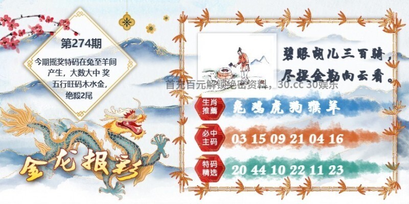 - 275期:澳门飞龙在天网四字平特连连中✔